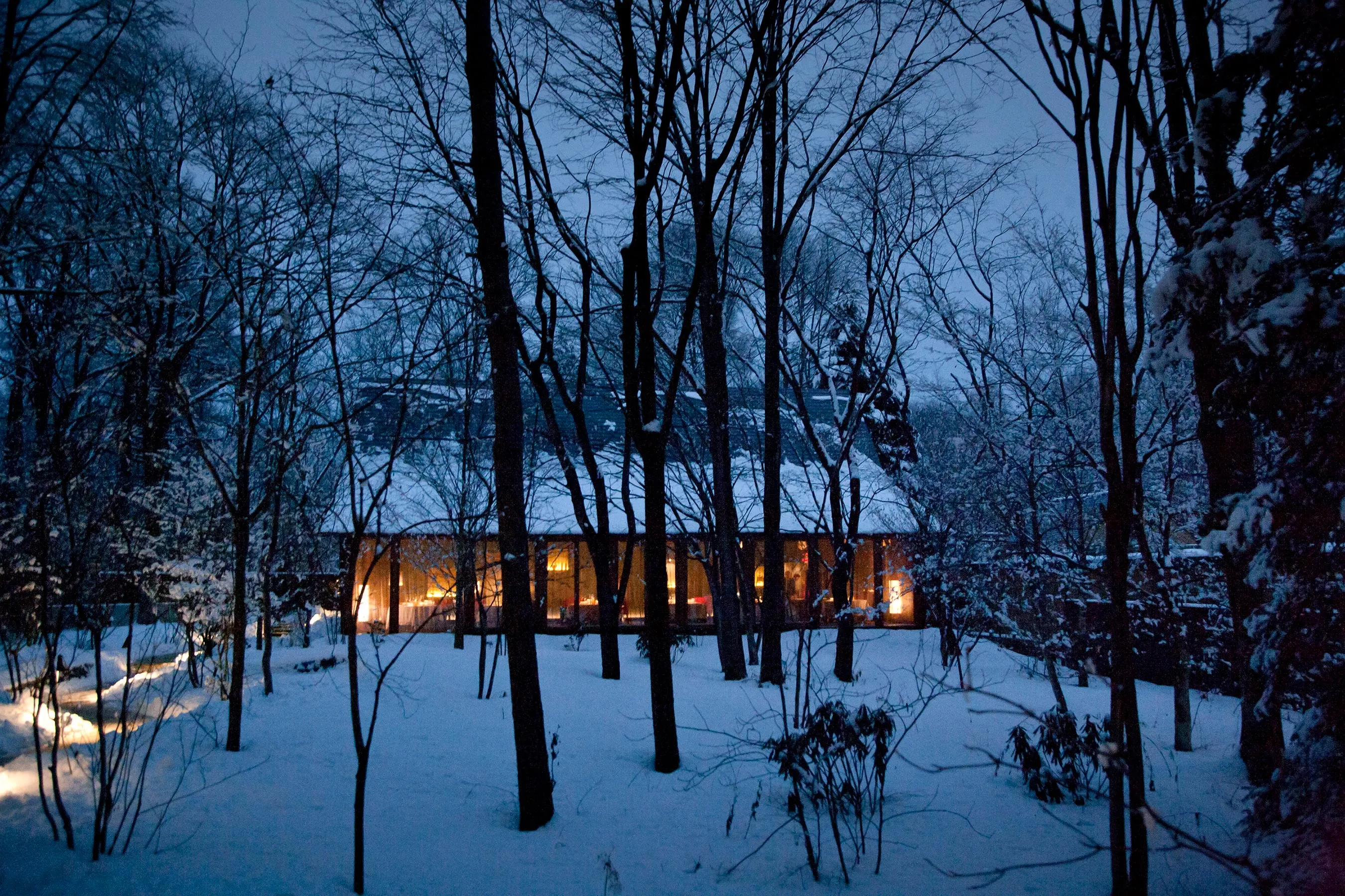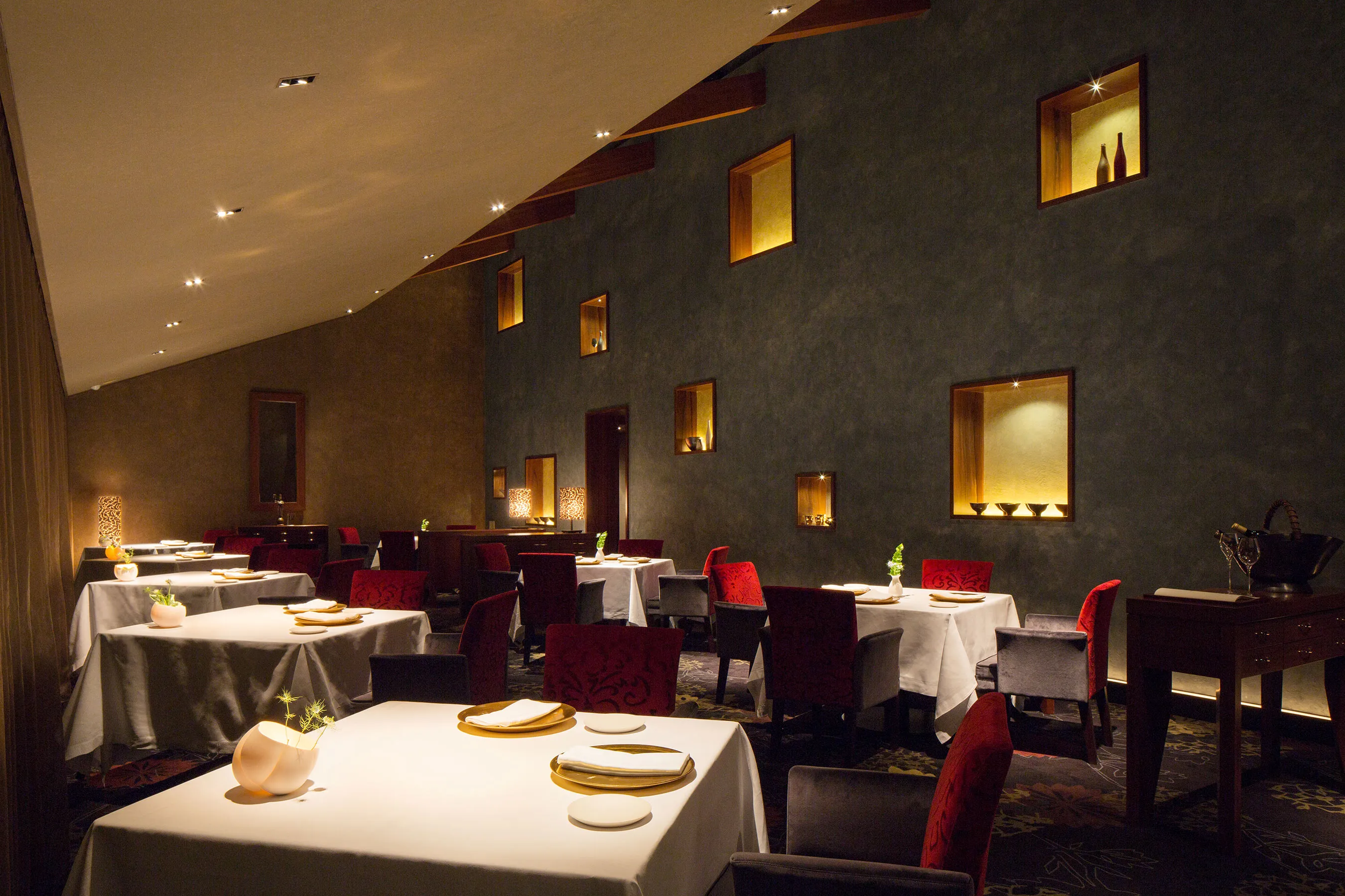 木立の中に佇む「軽井沢ホテルブレストンコート」のメインダイニング。自然美を大切にする日本人ならではの世界観が表現された「ニッポンフレンチ」は、一皿がアートのように美しく、味わうごとに身体がよろこび心が満たされていくフランス料理です。