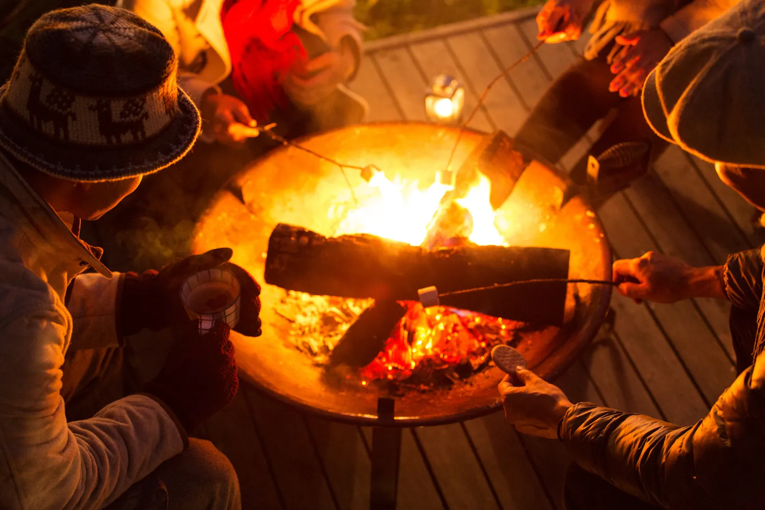 キッチンカーで、スモアセットを販売します。広場に設置された焚き火を囲み、マシュマロを焼き、チョコレートと一緒にクラッカーに挟み、温かいスナックを作ります。
