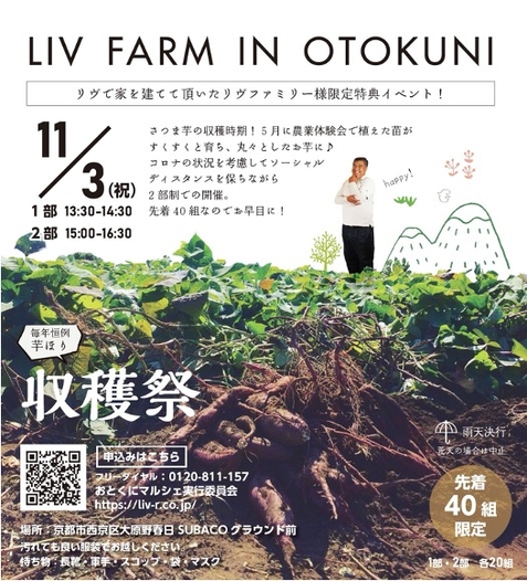 【芋ほり収穫祭】 リヴで家を建てて頂いたリヴファミリー様限定特典イベント