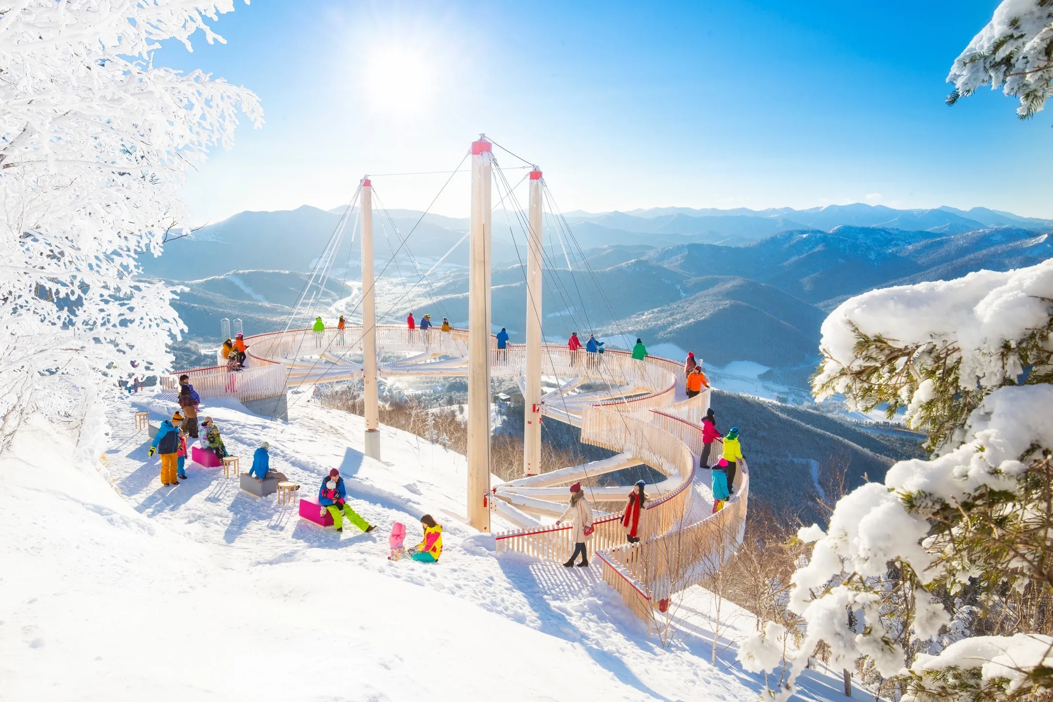 星野リゾート トマム(北海道勇払郡占冠村) 360度、霧氷に囲まれた展望デッキ「Cloud Walk」での滞在 冬山の絶景を眺める「霧氷テラス」で霧氷のライトアップを実施 実施期間:2018年12月1日〜25日