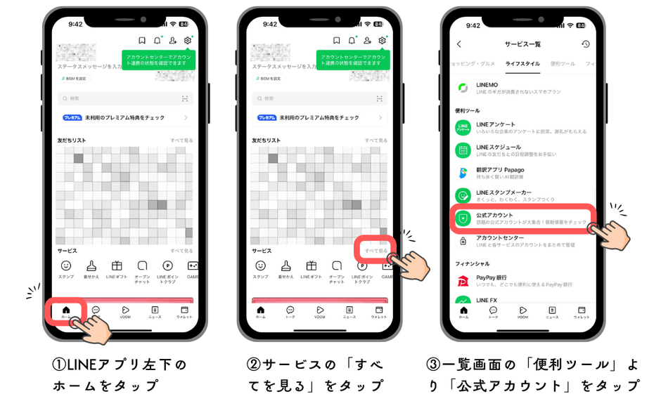 ③一覧画面の「便利ツール」より「公式アカウント」をタップ