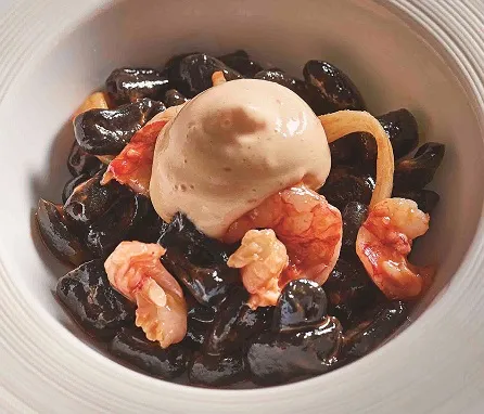 イカ墨を練り込んだカヴァテッリ(赤海老とイカとウニのソース)1人前 1,980円