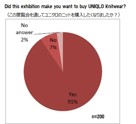 来場者アンケートの結果、「展覧会を見てユニクロのニットを購入したくなりましたか?」に対して、91%の来場者が、「YES」と回答。