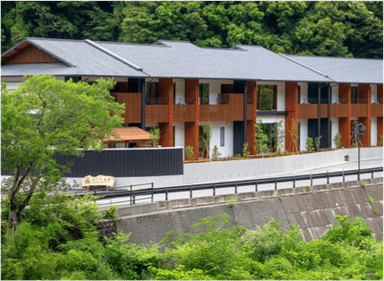 地元の木材を使って、日本初の木造温泉施設が誕生しました。“火災、地震に強いCLT工法(※)”、“日本人にとって安心感のある木のぬくもり”が特徴です。部屋のバルコニーからは緑豊かな山々や日本遺産にも登録された森林鉄道の鉄橋が見えるなど、絶景が揃っています。