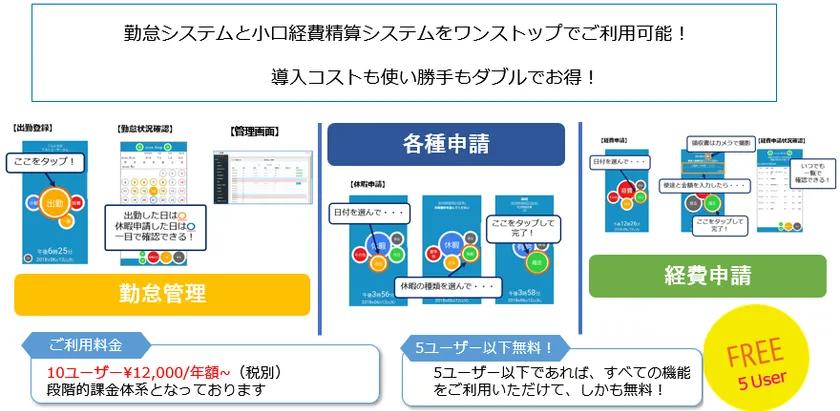 サービス内容:勤怠管理・経費精算をいつでも簡単に行えるクラウドサービス