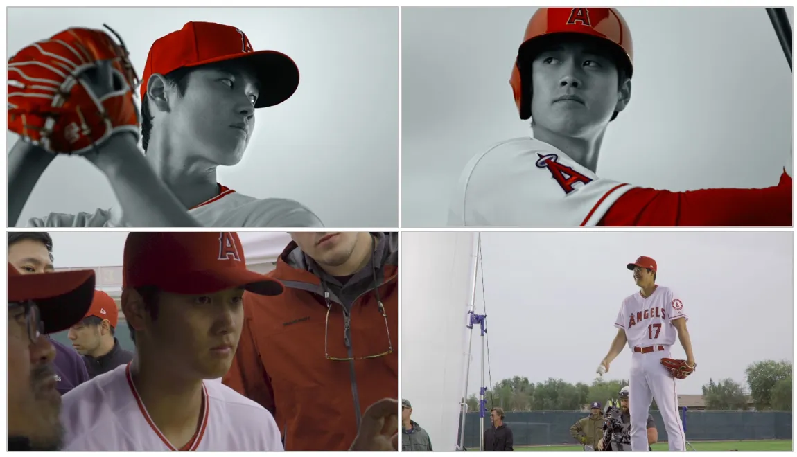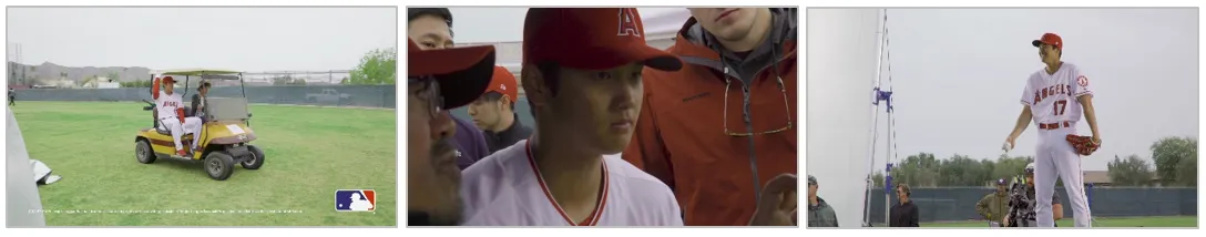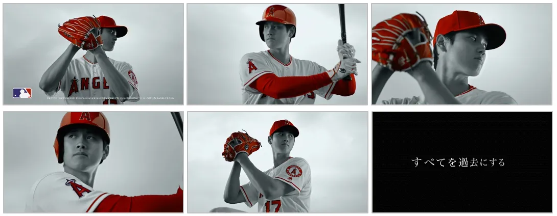 MLBプレーヤー・大谷選手がエンゼルスのユニフォーム姿で、新CMでピッチングとバッティングの二刀流披露。あどけなさの残る素顔を捉えた、メイキング&インタビュー動画も