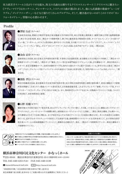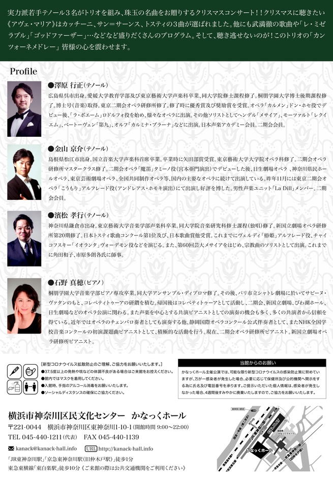 横浜市神奈川区民文化センターかなっくホール『テノールトリオdeクリスマスコンサート』