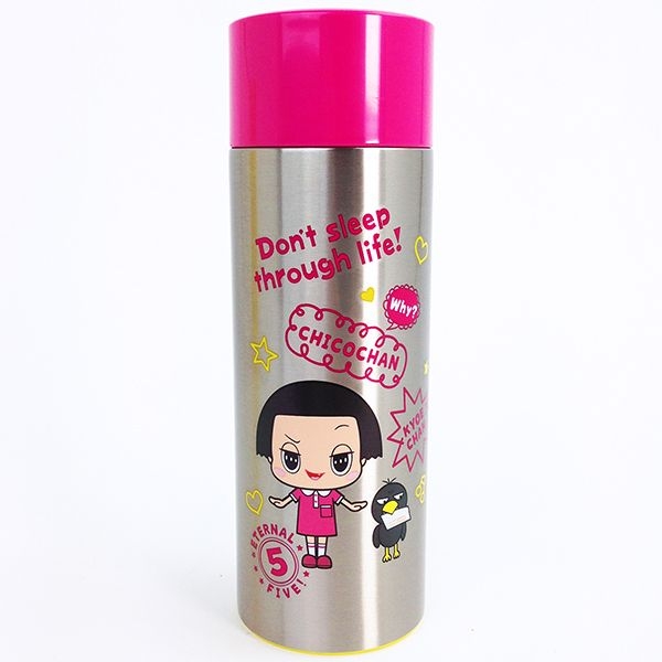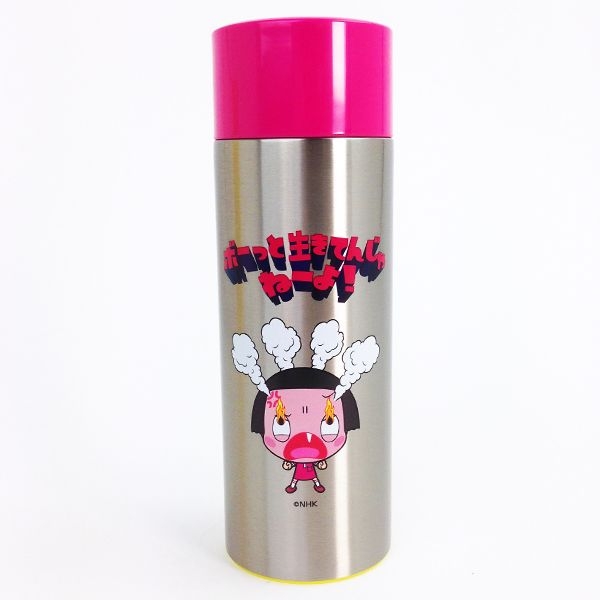 こちらはチコちゃんのマグボトル。隣にはカラスのキョエちゃんも♡ポップなデザインで気分も上がりますね!