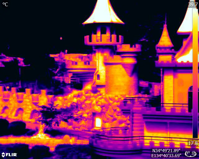 ZENMUSE XT2で撮影した赤外線画像。温度差を測定することにより、外壁タイルの浮き等を検出することができる。