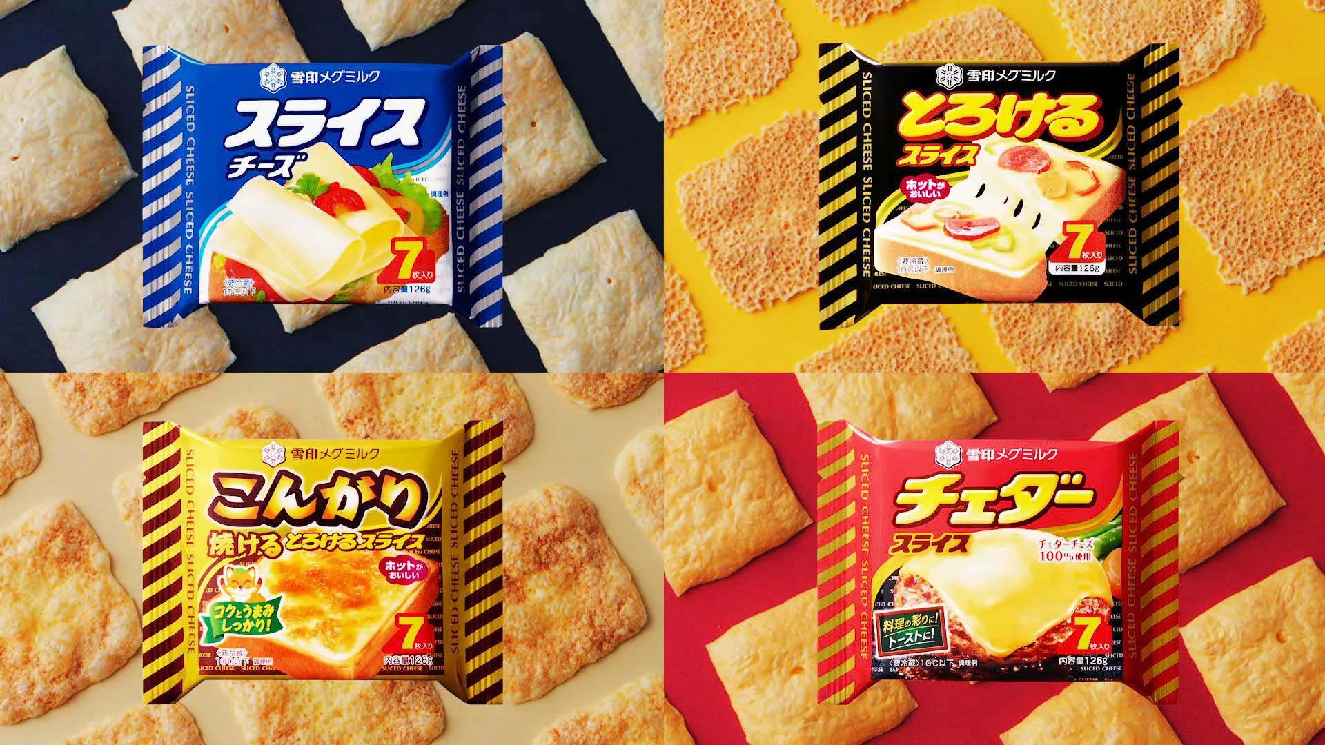 『スライスチーズ』や『チェダースライス』ではサクサク食感、『とろけるスライス』や『こんがり焼ける とろけるスライス』ではパリパリ食感が楽しめます。