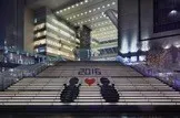 うめきた広場の大階段にシャドウグラフィックが登場。暖かな階段の光が溢れる中に影絵が浮かび上がります。広場を行き交う人々に、大階段を見て楽しんでいただけます。