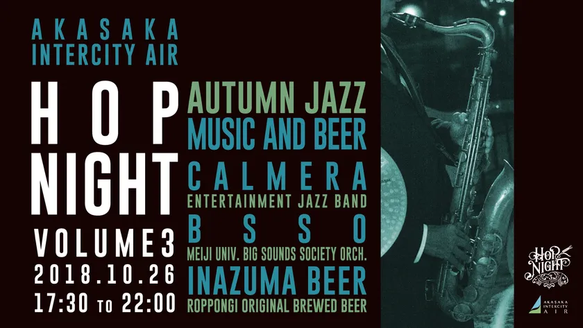 新日鉄興和不動産株式会社(本社:東京都港区、代表取締役社長:永井 幹人)は、秋の夜長を、JAZZとオリジナルクラフトビールで満喫するフード&ミュージックフェス「HOP NIGHT(ホップナイト)vol.3」を、赤坂インターシティAIRにて10月26日(金)に開催することを決定致しましたのでお知らせします。