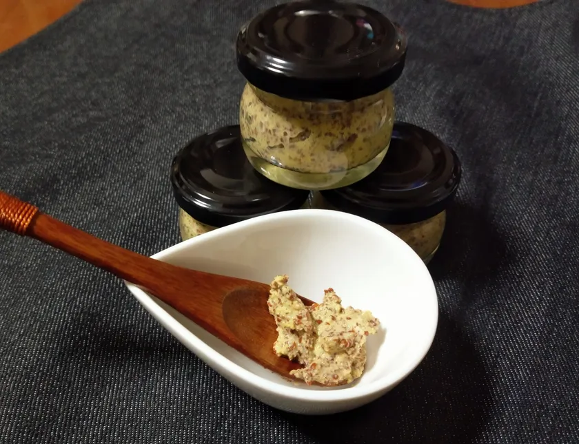 現在売られているマスタードの主原料は「カラシナの種」と「酢」です。しかしマスタードの起源を辿ると、「潰したカラシナの種に未熟なぶどう果汁を混ぜていた」という説が有力です。そこで当団体でも笛吹市産のカラシナの種と未熟ぶどう果汁だけでマスタードを作りました。「中世ヨーロッパではこんな感じの味だったのかな?」と想像しながらお楽しみいただけます。