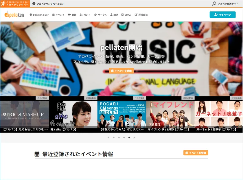 アカペラのことが何でもわかるWEBサイト「pellaten」公開! イベント、動画、サークル情報etc.を自動収集するアカペラ辞典