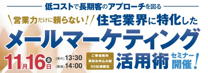 住宅業界に特化した“メールマーケティング活用術”セミナー ~低コストで長期客のアプローチを図る!~11月16日開催