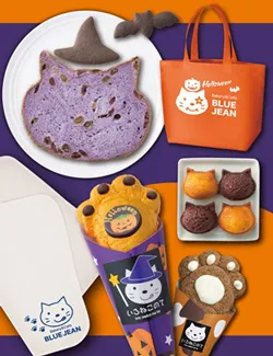 ドライクランベリーとレーズンを混ぜ込んだブドウ風味の「いろねこ食パン+(プラス)」や、食パンに飾って楽しめる、コウモリと魔女の帽子の形をしたブラックサブレがセット限定で登場。人気の焼き菓子「いろねこのて」や「いろねこフィナンシェ」もかぼちゃ味に。その他、これからの季節に大活躍の可愛い“いろねこちゃん”のブランケットも入っております。
