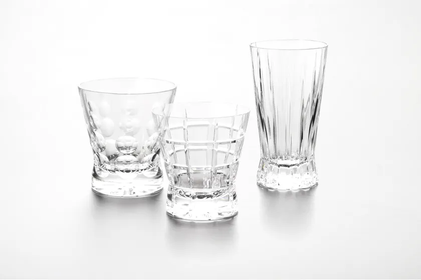今回復刻されたグラスのデザインは「ニモ」「ピーレイジ」「ウィンドウ」の3種類。いずれも100年以上続く伝統の柄でありながら、現代の生活にマッチするスタイリッシュなデザインで、季節やシーンを問わず様々な場面で活躍してくれます。また、ベース(花瓶)は19世紀より続くイギリス・ビクトリア調のカットを基本に、現代風にアレンジさせたものが、いずれもハンドカットで施されています。