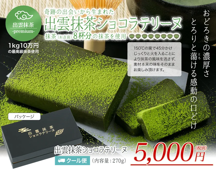 自社茶園で採れた1kg10万円の高級抹茶「出雲抹茶-premium-」を贅沢使用