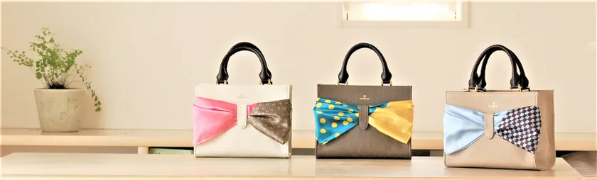 江戸小紋スカーフを着飾る国産レザーハンドバッグを10/25発売 バッグ3色 × スカーフ4色の計12通りの組み合わせが可能
