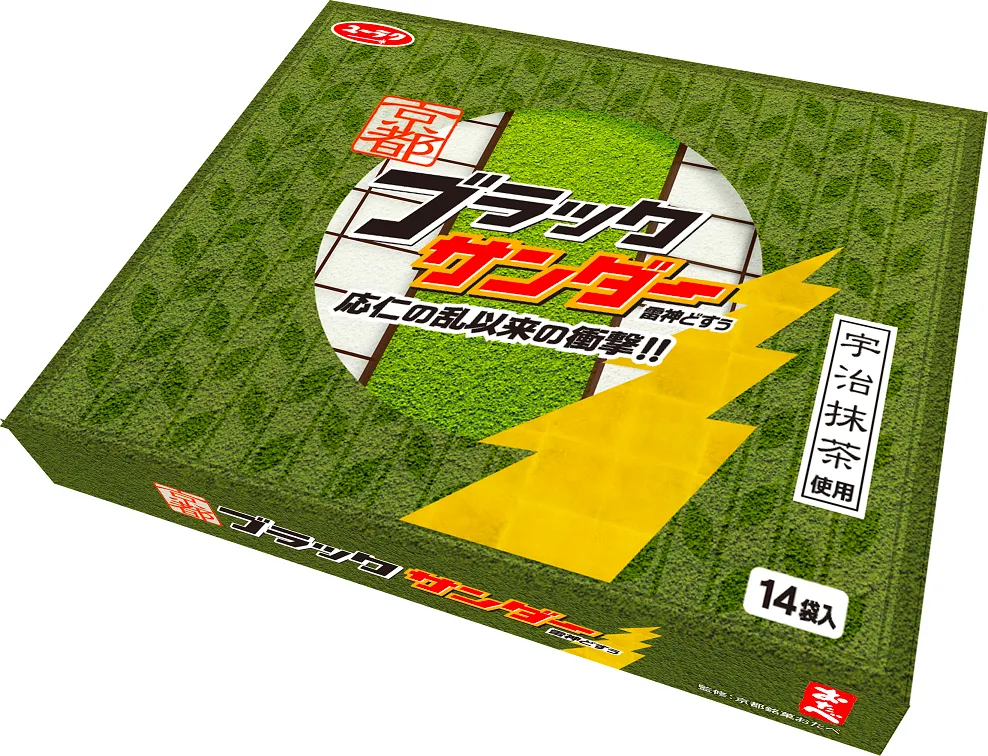 本商品は、1994年より発売し20年以上愛されている、大人気の「ブラックサンダー」シリーズの新商品です。「京都ブラックサンダー」は有楽製菓初の京都土産として、京都土産市場にて愛されている「京都銘菓おたべ」を50年以上製造・販売している株式会社美十に監修いただき、本格的な抹茶の味にこだわって開発いたしました。