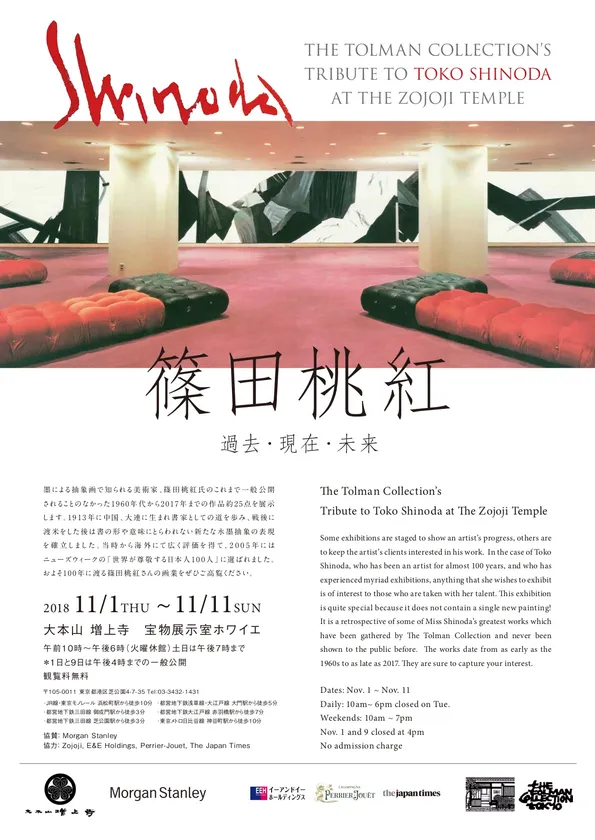 有限会社ザ・トールマン コレクション(本社:東京都港区、代表取締役:ノーマン トールマン)は、東京・増上寺(港区)でのイベント「篠田桃紅展-過去・現在・未来」の開催が、2018年11月1日(木)からと迫っていることをお知らせします。