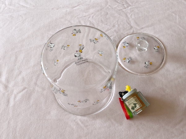 おそろいのスヌーピー柄の耐熱ガラスのカップソーサーもあるので、一緒に出したら素敵ですね!