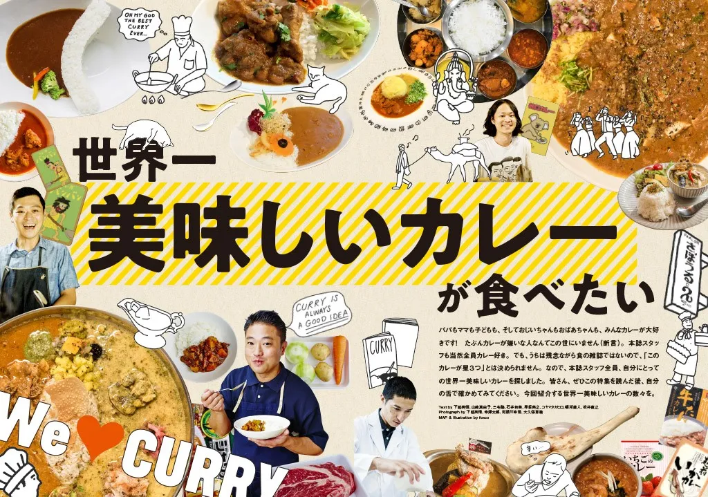 パパもママも子どもも、そしておじいちゃんもおばあちゃんも、みんなカレーが大好きです! たぶんカレーが嫌いな人なんてこの世にいません(断言)。本誌スタッフも当然全員カレー好き。でも、うちは残念ながら食の雑誌ではないので、「このカレーが星3つ」とは決められません。なので、本誌スタッフ全員、自分にとっての世界一美味しいカレーを探しました。皆さん、ぜひこの特集を読んだ後、自分の舌で確かめてみてください。今回紹介する世界一美味しいカレーの数々を。