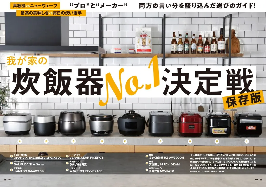 「今一番美味しい炊飯器はどれ?」という問いに答えはない。ごはんの美味しさは嗜好であり、一番美味しいは各自異なるからだ。とはいえ、各炊飯器の特徴を知り、自分に近いごはんのプロの意見を参考にすれば、我が家にとっての一番は必ず見つかる。本特集を読めば注目の最新9モデルから、我が家の一番美味しい炊飯器が探し出せるはずだ。