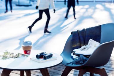 一般的なリンクでは飲食が禁止されていますが、本リンクでは、氷上のベンチにドリンクをテイクアウトすることができます。