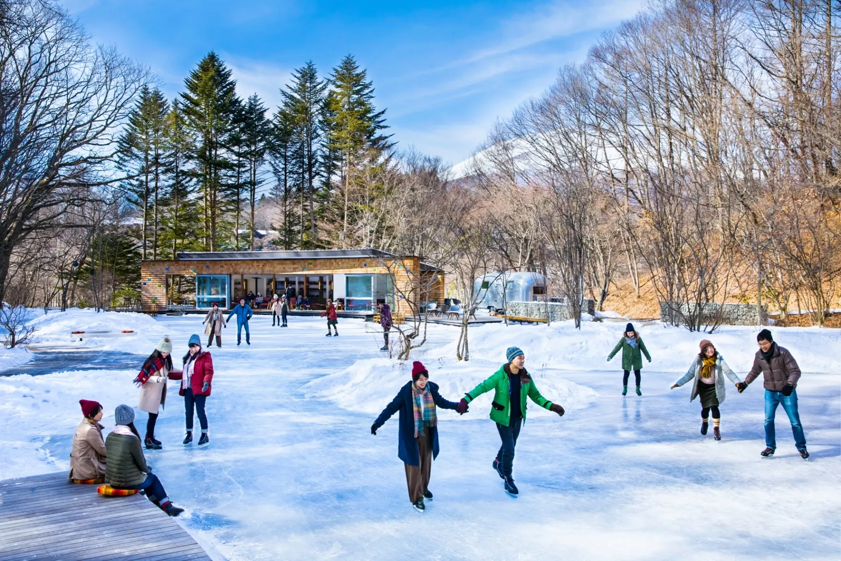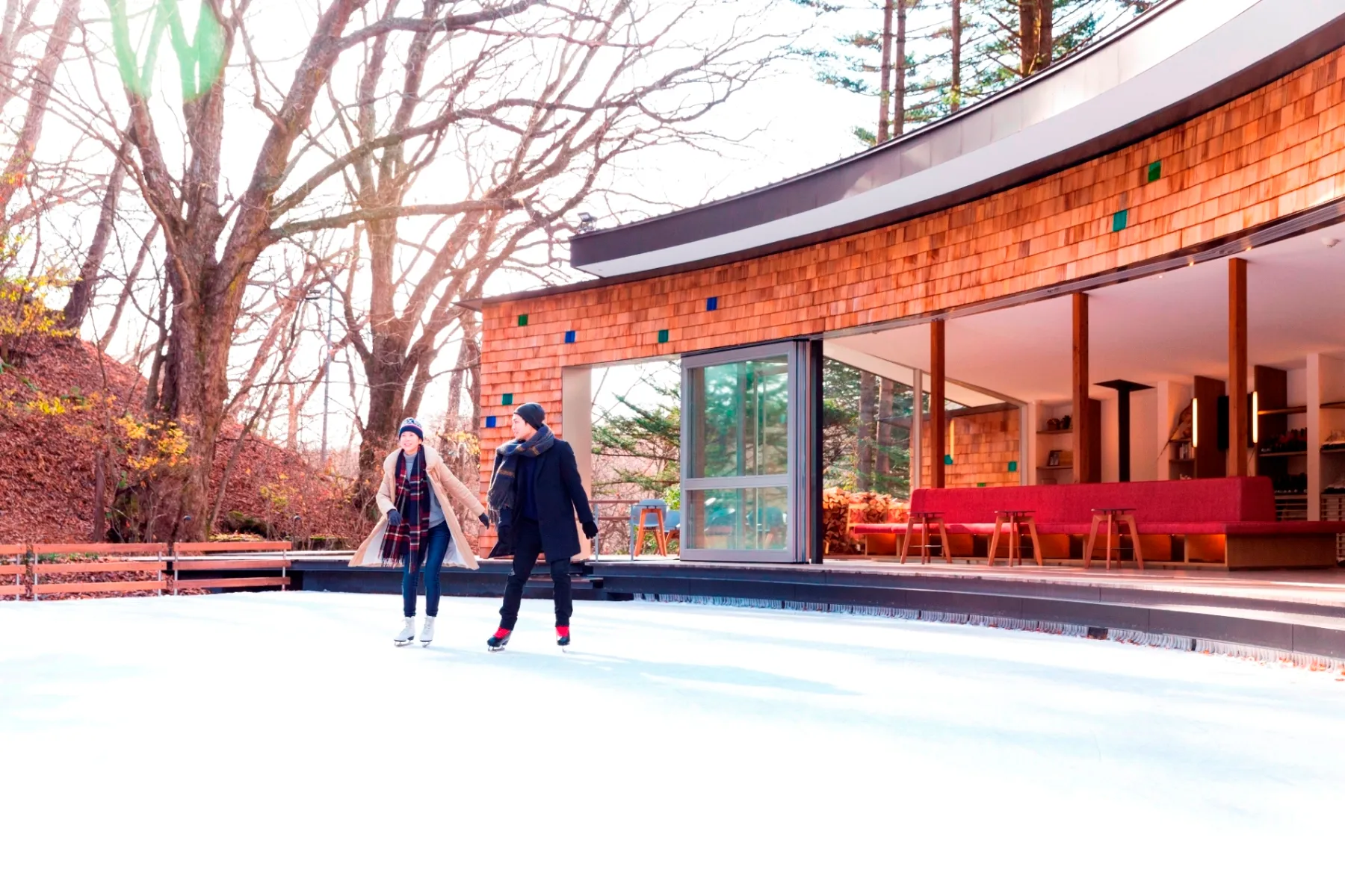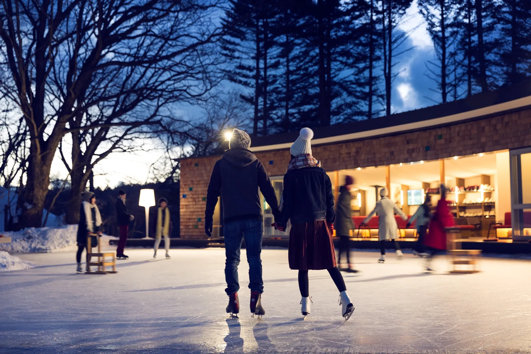 スケートと森の雰囲気をまるごと楽しむための、カップル向けプラン「氷上ピクニック」を今シーズンから新たに販売します。