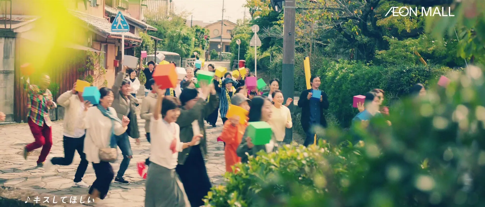 街の人々が運ぶ謎のキューブ…その目的は? 三重県民約700人が参加! 完成したのは巨大な“つ”の文字!? 新規OPENの「イオンモール津南」TV-CM、11/12よりオンエア