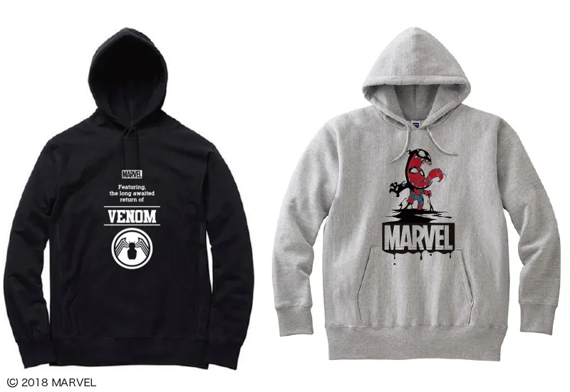 これからの季節にピッタリなフーディ―や、カラバリ豊富なトートバッグなど、「ヴェノム」の怖さをそのまま表現したものから、可愛くデフォルメした女性も使いやすいアイテムまで揃います。