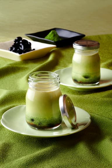 河越抹茶と厳選した牛乳と卵を使用して作ったプリンが「河越抹茶プリン」です。プリンの中には黒豆を贅沢に使用しており、「河越抹茶」の雅やかな風味とコクに加え、柔らかな黒豆の深みのある味をお楽しみいただける逸品です。
