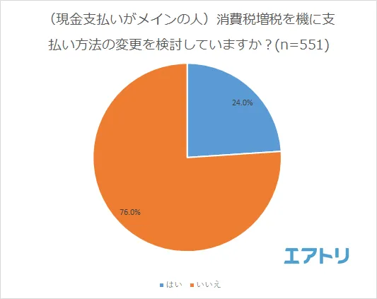 「はい(24.0%)」と回答した人は少数派で、これからも現金での支払いを続ける人の方が多いことが分かりました。
