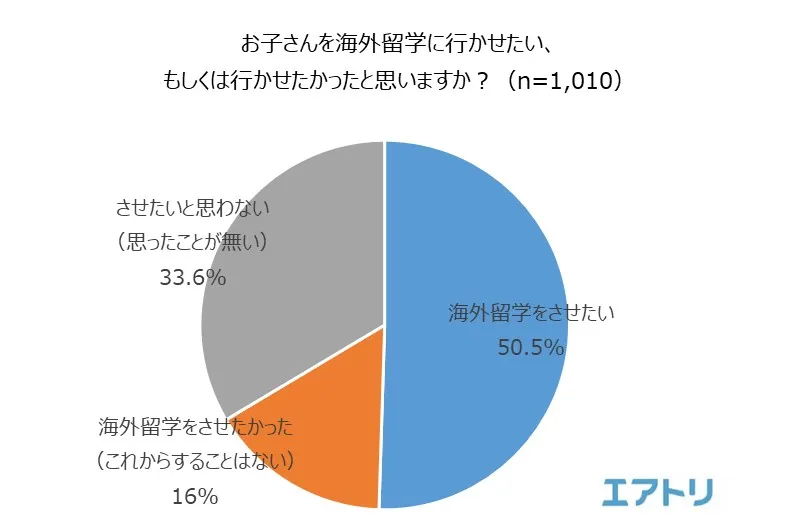 「海外留学をさせたい」(50.5%)と、半数以上の人が回答しました。
