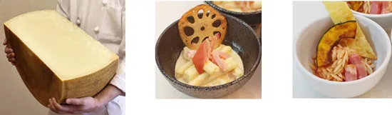 目の前で仕上げる「イルマーレ・シェフズキッチン」 20kgもある大きな塊!チーズの表面を削るように和えて仕上げるパスタ 2018年11月1日(木)より 呉阪急ホテル バイキング「イルマーレ」にて