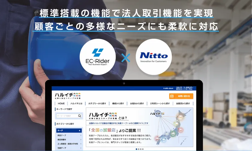 株式会社フライトホールディングス(東証2部/証券コード:3753)のグループ会社である株式会社イーシー・ライダー(本社:愛知県名古屋市、代表取締役:川手 正己)が提供する、BtoB向けECサイト構築ASP「EC-Rider B2B(イーシーライダー・ビートゥービー)」が、日東電工CSシステム株式会社(本社:愛知県豊橋市、代表取締役:脊尾 文俊、以下 日東電工CSシステム)が運営する業務用品販売サイト「ハルイチ」の基盤システムとして採用され、本格的に稼働を開始いたしました。