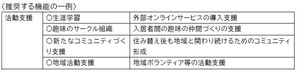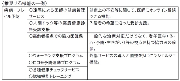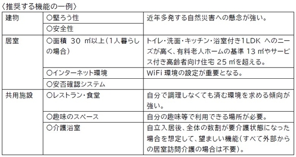 そのため、「シニア・リビング」に求められる次の機能を推奨する。