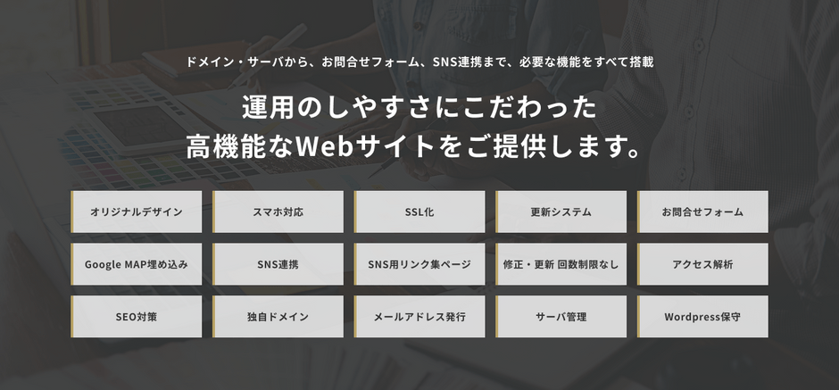 中小零細企業のなかなかWebに予算をかけられない事業者様にも、もっと品質の高い、Webサイトを制作・運用してもらいたいという気持ちから生まれたサービスです。