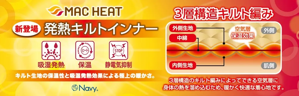 吸湿発熱の3層構造で極上の温かさ MAC HEAT『発熱キルトインナー』新登場