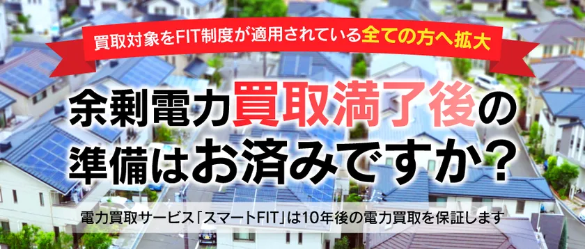 株式会社スマートテック(本社:茨城県水戸市、代表取締役社長:小寺 雄三)は、固定価格での買取期間が2019年以降に順次終了する10kW未満の太陽光発電を対象とした電力買取サービス『スマートFIT』を2018年11月1日(木)にリニューアルします。これによりこれまでの買取対象でないお客さまもご利用いただけるようになります。