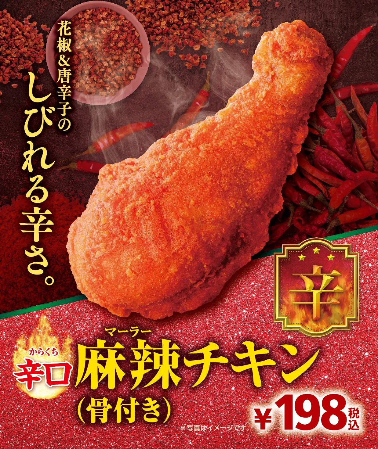 花椒と唐辛子を効かせた、しびれる辛さが特徴の麻辣(マーラー)味のフライドチキンです。すっきりとした辛さ(辣)の後からじわじわと感じる辛さ(麻)が重なり、やみつきになる味です。にんにく、ごま油、ねぎ油で旨みを引き出しています。