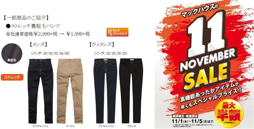 マックハウス自慢の機能アイテムを取り揃えた「NOVEMBER SALE」に、ぜひお越しください。