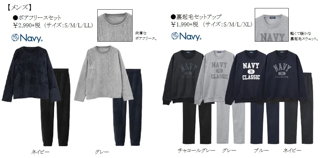 メンズのおすすめは、暖かな風合いで肌触り、着心地も抜群なボアフリースの上下セット。