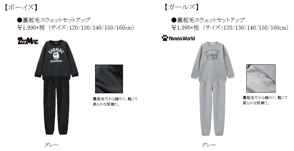 今年はメンズ、レディース、キッズとも軽くて暖かな裏起毛スウェットの上下セットをデザイン豊富に取り揃えています。大人気キャラクターから、マックハウスのオリジナルキャラクター、トレンドのロゴ入りデザインにスタイリッシュでシンプルなデザインまで、ワンマイルウエアとしても活躍度の高いルームウエアです。 パック入りなので家族全員分まとめ買いもしやすく、寒い季節のちょっとしたプレゼントとしてもいいですね。