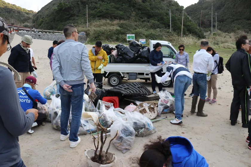 この研修は、静岡県下田市の海岸清掃を通して、現在社会問題になっている海洋プラスチックゴミや海洋ゴミの深刻さを実感し、人間が自然に対して与える影響を見直すとともに、大自然の中で冥想を行うことで大自然との一体化を脳から体感する研修で、全国から会社経営者が集まりました。