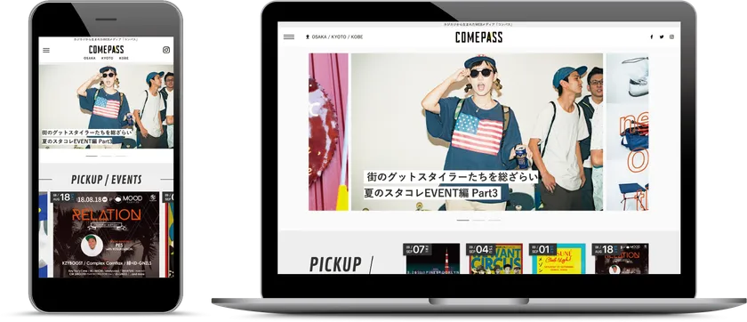今回のリニューアルを契機に、「COMEPASS コンパス」は関西のストリートカルチャーにまつわる価値ある情報が集約するサイトへとステップアップしていきます。訪れるユーザーがただ通り過ぎるだけでなく、立ち止まり、能動的に情報に触れることのできる、そんな1つのPVに重みのある、単純な累積PV数以上の価値を持つメディアサイトとなるはずです。