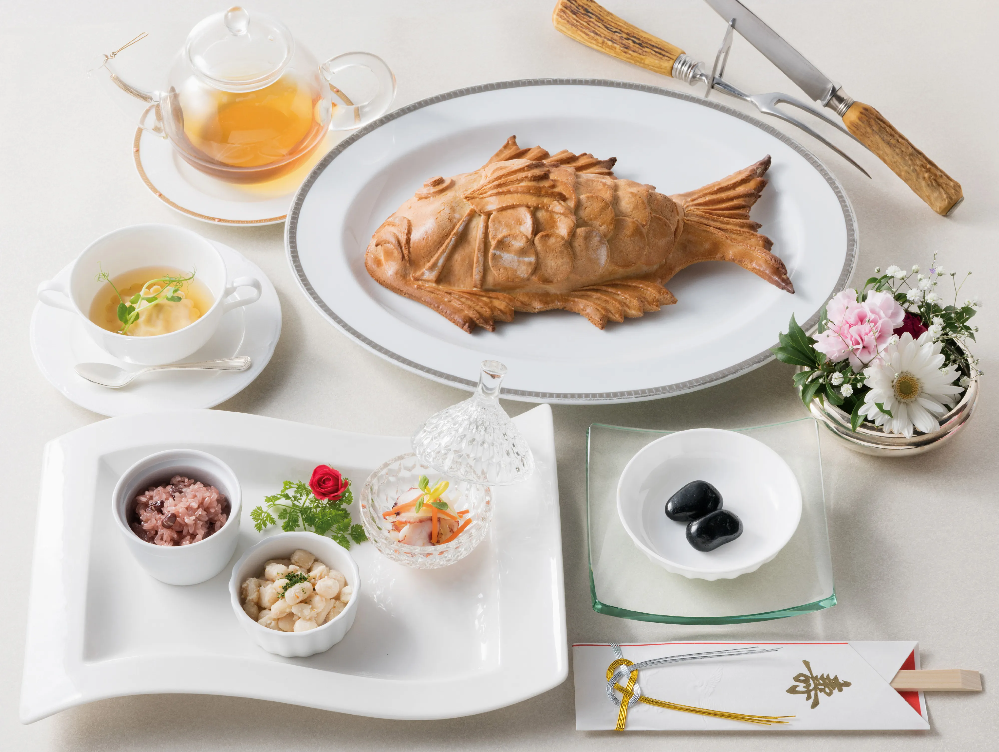 「一汁三菜」を基本にした「祝い膳」をフレンチスタイルでお届けします。
