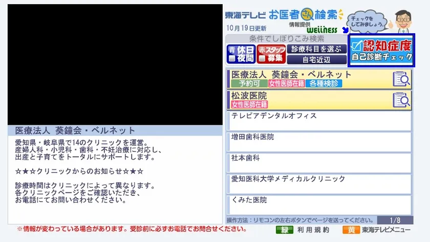 テレビで「健康チェック」!東海テレビのデータ放送 “お医者さん検索”で2018年11月5日に新サービススタート!