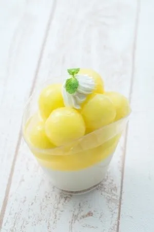 ヨーグルトのムース、レモン風味のゼリーと合わせて